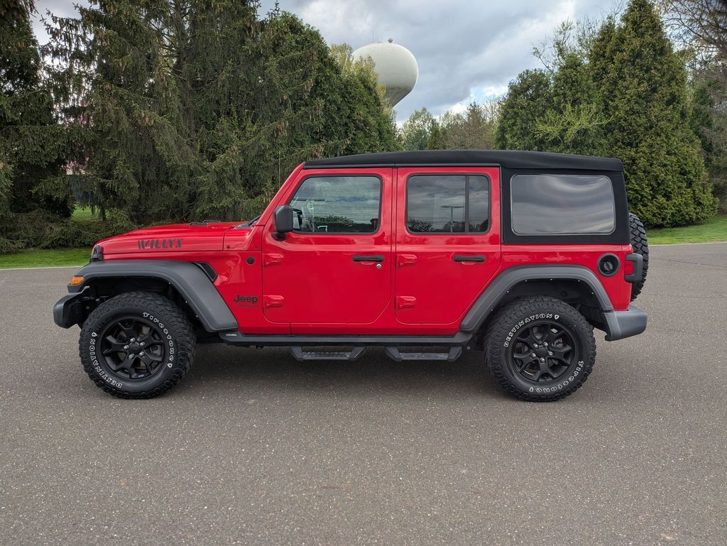 Powered by a robust 3.6L V6 24V VVT engine and equipped with an 8-speed automatic transmission, this Wrangler Unlimited Willys delivers an exhilarating driving experience on and off the road. With 4-wheel drive and impressive fuel efficiency ratings of 19 MPG city and 24 MPG highway, it's the perfect blend of capability and efficiency.