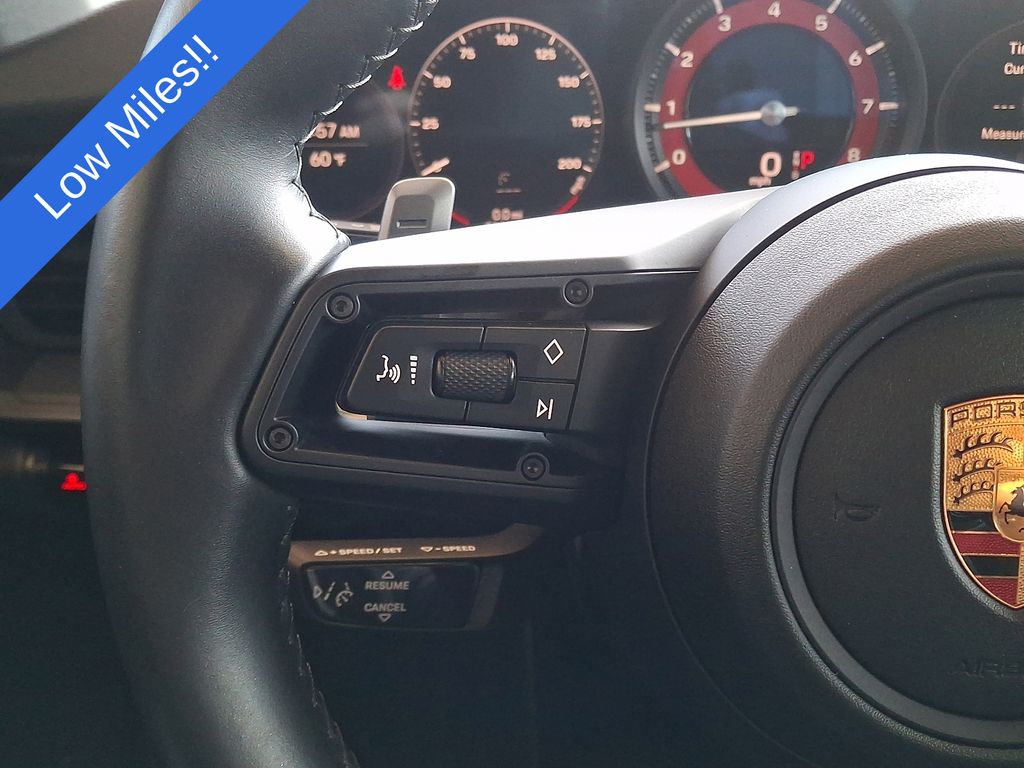 4-Way Sport Seats, 4-Wheel Disc Brakes, 8 Speakers, ABS brakes, Adaptive suspension, Air Conditioning, Alloy wheels, Apple CarPlay, Auto-dimming door mirrors, Auto-dimming Rear-View mirror, Automatic temperature control, Brake assist, Bumpers: body-color, Delay-off headlights, Driver door bin, Driver vanity mirror, Dual front impact airbags, Dual front side impact airbags, Electronic Stability Control, Exterior Parking Camera Rear, Four wheel independent suspension, Front anti-roll bar, Front Bucket Seats, Front Center Armrest, Front dual zone A/C, Front reading lights, Fully automatic headlights, Garage door transmitter: HomeLink, Heated door mirrors, Heated front seats, Illuminated entry, Leather Seat Trim, Leather steering wheel, Low tire pressure warning, Navigation system: Porsche Communication Management (PCM), Occupant sensing airbag, Outside temperature display, Overhead airbag, Overhead console, Passenger door bin, Passenger vanity mirror, Porsche Communication Management, Power door mirrors, Power driver seat, Power passenger seat, Power steering, Power windows, Radio data system, Rain sensing wipers, Rear anti-roll bar, Rear fog lights, Rear window defroster, Remote keyless entry, Security system, Speed control, Split folding rear seat, Spoiler, Sport steering wheel, Steering wheel mounted audio controls, Tachometer, Telescoping steering wheel, Tilt steering wheel, Traction control, Trip computer, Variably intermittent wipers, Wheels: 19" Front/20" Rear Carrera.
